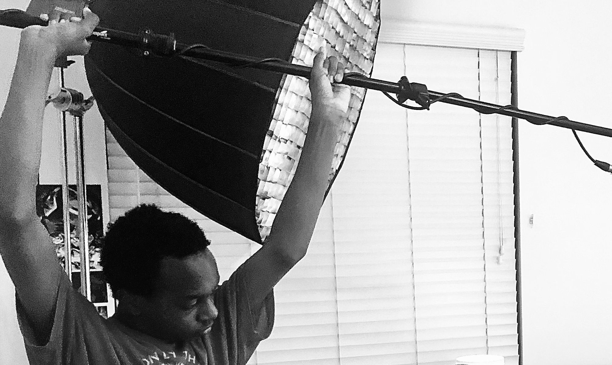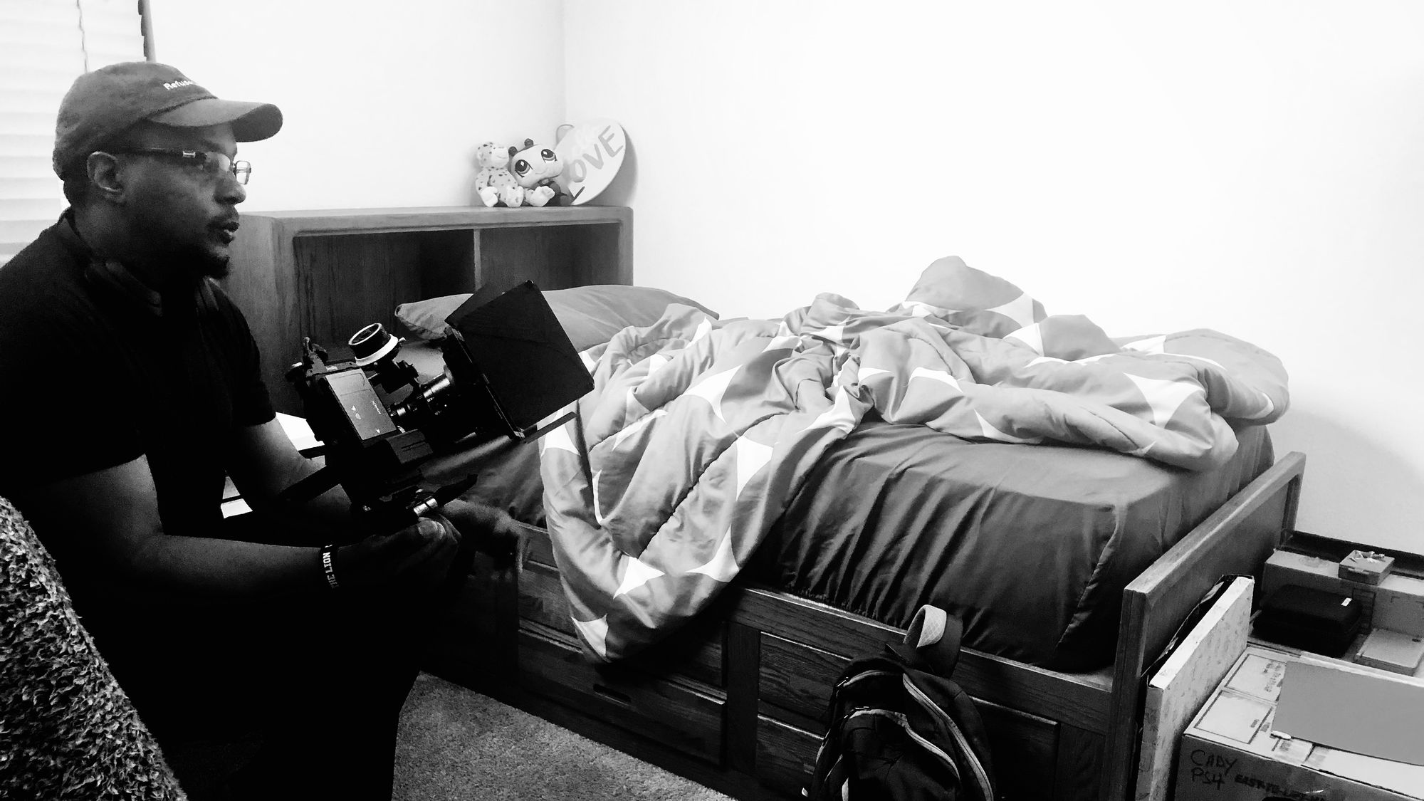 I directed, operated the camera, managed the shooting schedule, shaped light with each setup, etc. Caleb worked right alongside me, helping with boom mic operation, audio monitoring, slating the third scene, and moving equipment. He was even the focus puller on a tilting shot.