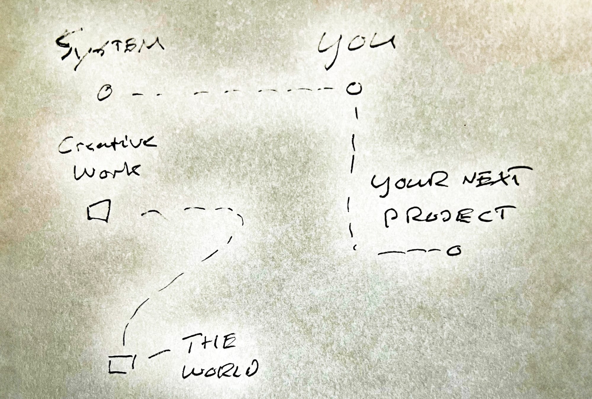 A system to manifest your creativity is more important than the specific creative work you want to achieve. This is a generalization, and of course, it isn't universally true, but it's true for the sake of the point I'm conveying. When you're done with the creative thing that you're trying to do, that creative thing departs to the world, but the system stays with you for your next project.