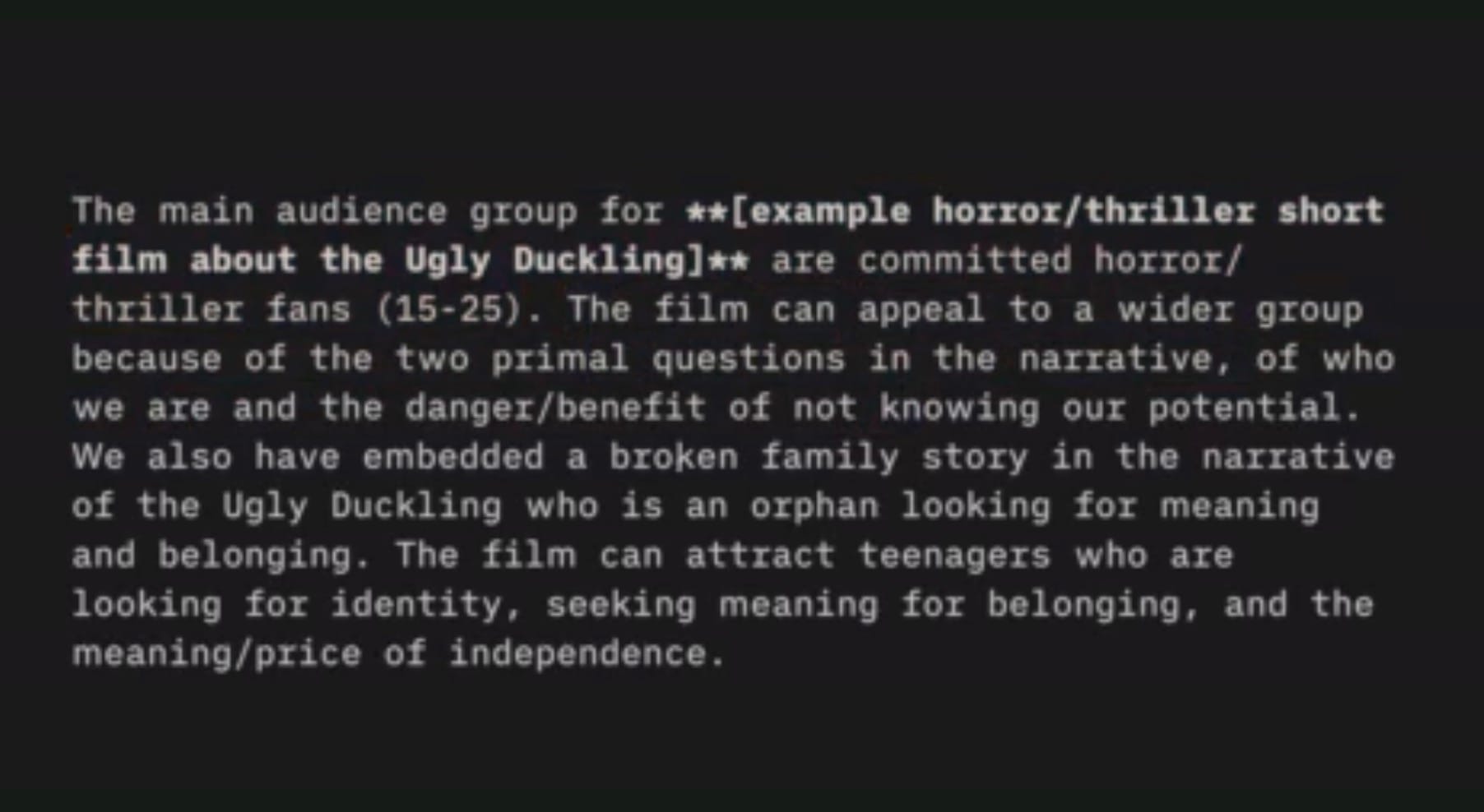 - Audience & Marketing: A description of your film's target audience and marketing strategy.